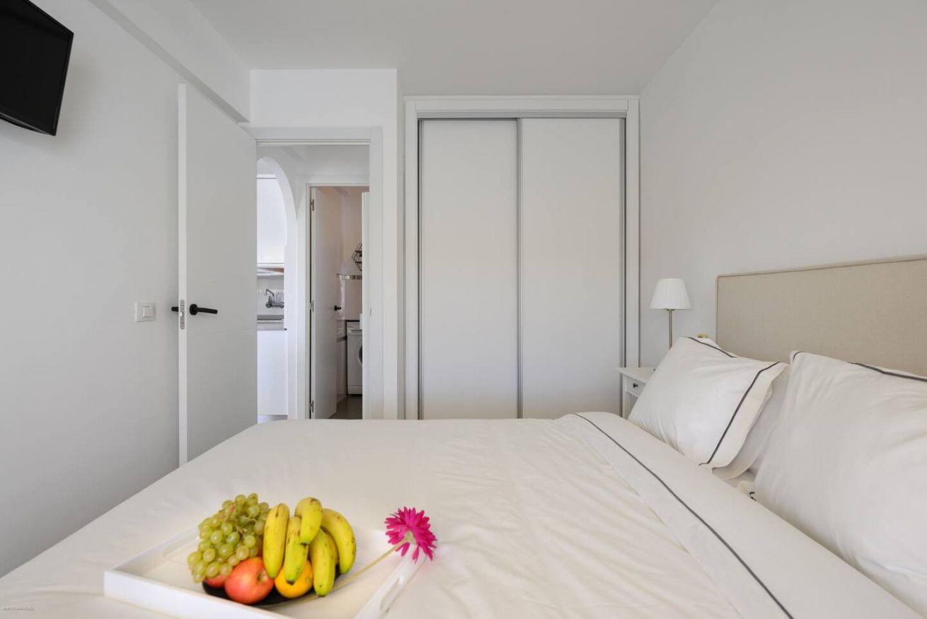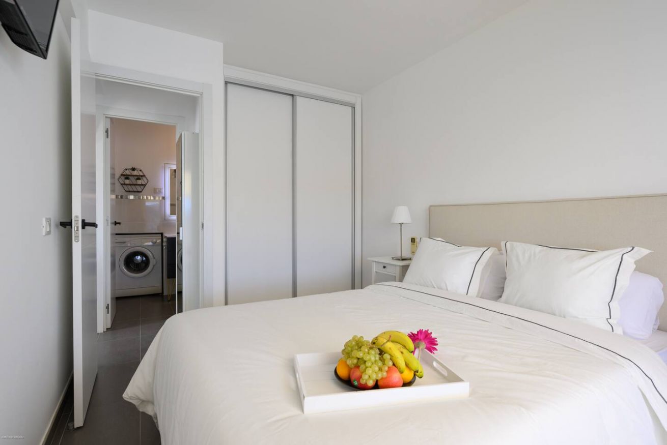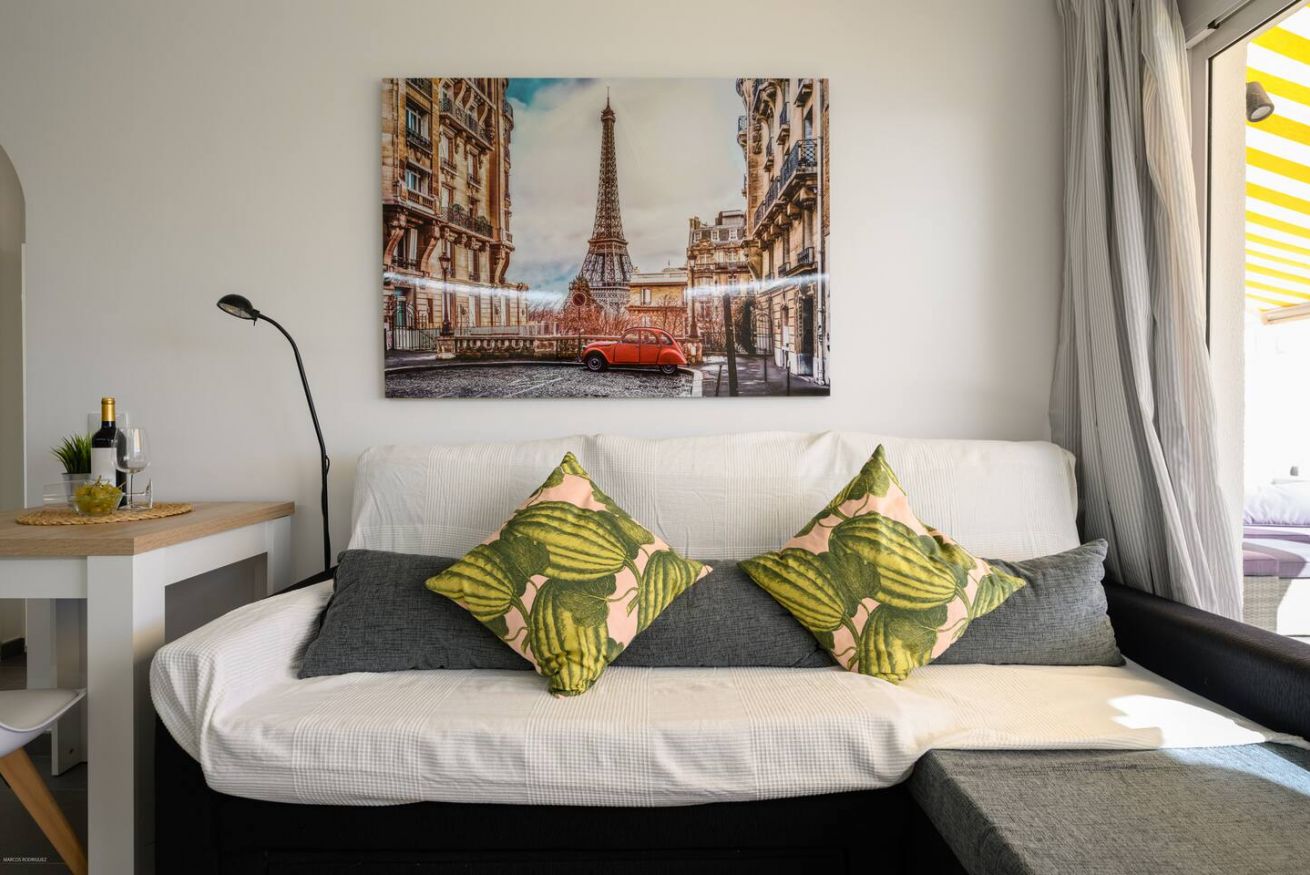 1 Schlafzimmer. Wohnzimmer, Küche, Badezimmer und herrliche private Terrasse von 18 m² mit motorisierter Faltmarkise.